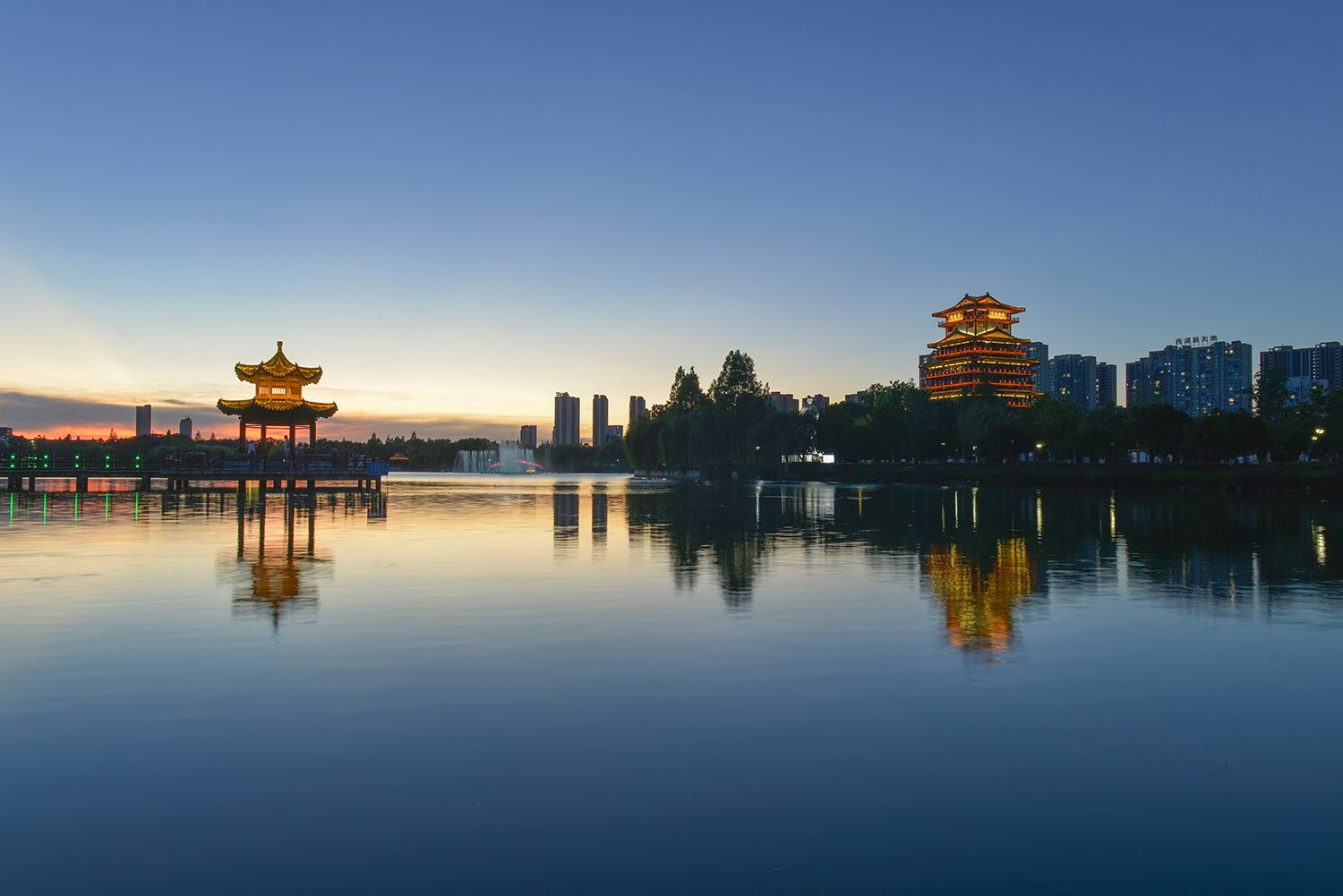 斜暉脈脈水悠悠,樓臺倒影一鏡收。