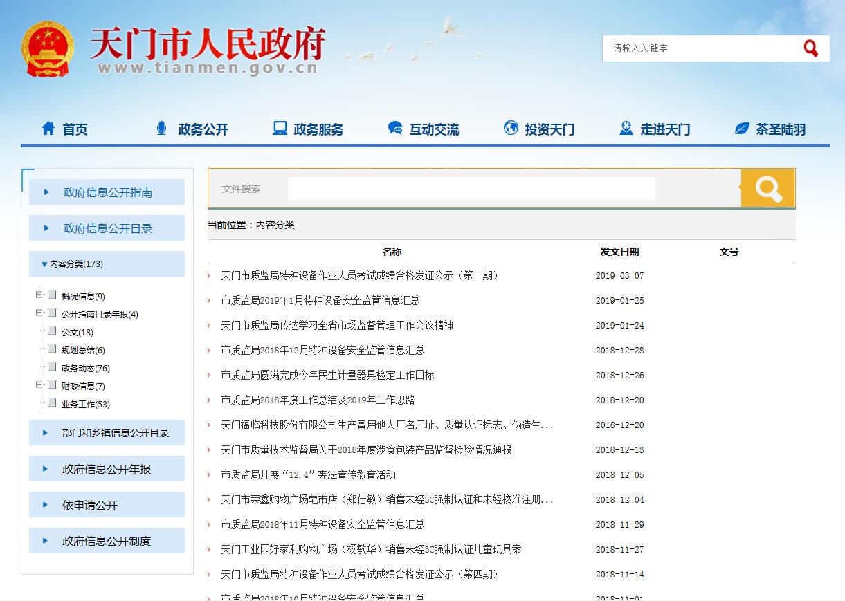 天門市質監局2018年政府信息公開工作年度報告