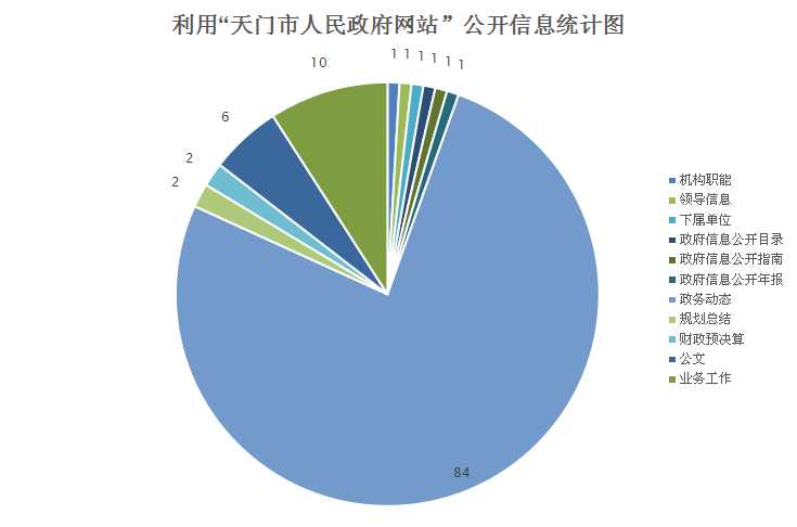 1.政務宣傳信息公開情況。2018年1月至12月,我局累計公開各類政務宣傳信息341篇。其中,在“天門市人民政府網站”主動公開政府信息110篇(具體為:機構職能1篇、領導信息1篇、下屬單位1篇、政府信息公開目錄1篇、政府信息公開指南1篇、政府信息公開年報1篇、政務動態84篇、規劃總結2篇、財政預決算2篇、公文6篇、業務工作10篇);在“云上天門”政務新媒體平臺發布各類政務信息82篇,閱讀點擊量4170次;在“中國建設報”刊登1篇,“中華建設網”發表29篇,“中華建設”雜志發表2篇,“黨史天地”雜志發表1篇,“筆尖上的天門”雜志發表1篇,“天門日報”刊登74篇,“天門周刊”刊登4篇,“天門生活”刊登1篇,“天門發布”刊登5篇,“2018年度中南六省(區)環衛年會材料匯編”刊登1篇;向省住建廳信息中心上報稿件30篇。