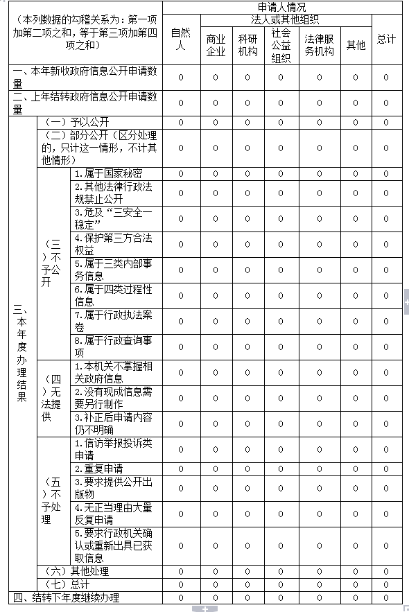 按照市人民政府辦公室《關于進一步加強政府信息公開工作的通知》具體要求,規范開展依申請公開工作。針對復雜敏感、涉及多個業務部門或者可能引發行政復議、行政訴訟的依申請公開事項,市局領導專門召開協調會,研究確定答復意見。2019年度我局無一件依法申請公開事項。