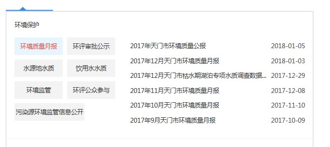 十三是推進環境保護信息公開。主動回應社會關注和群眾關切的熱點問題,印發《天門市重污染天氣應急預案》、《天門市土壤污染防治工作方案》,公開土壤重點監管企業名單2個,公開環保接受履職盡責督促檢查工作簡報26期,累計銷號公示中央環保督察反饋意見整改情況32處,公開責令停產整治決定書3份、行政處罰決定書12份、責令改正違法行為決定書5份、查封(扣押)決定書2份。至今累計公開環境質量月報38次,環評審評公示65家企業,水源地水質季報7次,公示城區和鄉鎮生活飲用水日監測信息公示表500余次,公示環評公眾參與42條,公示國控重點污染源監督性監測季報3期。在市政府網站首頁顯著位置設置了環保申報審批服務網上辦事大廳,集中展現12369環保舉報平臺、環保網上行政審批、建設項目環境影響登記表備案系統、建設項目環境影響評價登記表備案公示累計已有56項、企業自行監測信息發布平臺、污染源自動監控綜合管理平臺、建設項目環境影響評價信息平臺、環保辦事狀態結果查詢等。推進公開了鄉鎮級河道河長226人姓名及責任分工,公開了市級河道43條及其擔任河長的市領導姓名及責任分工,公開了市級湖泊45個及其擔任湖長的市領導姓名及責任分工。