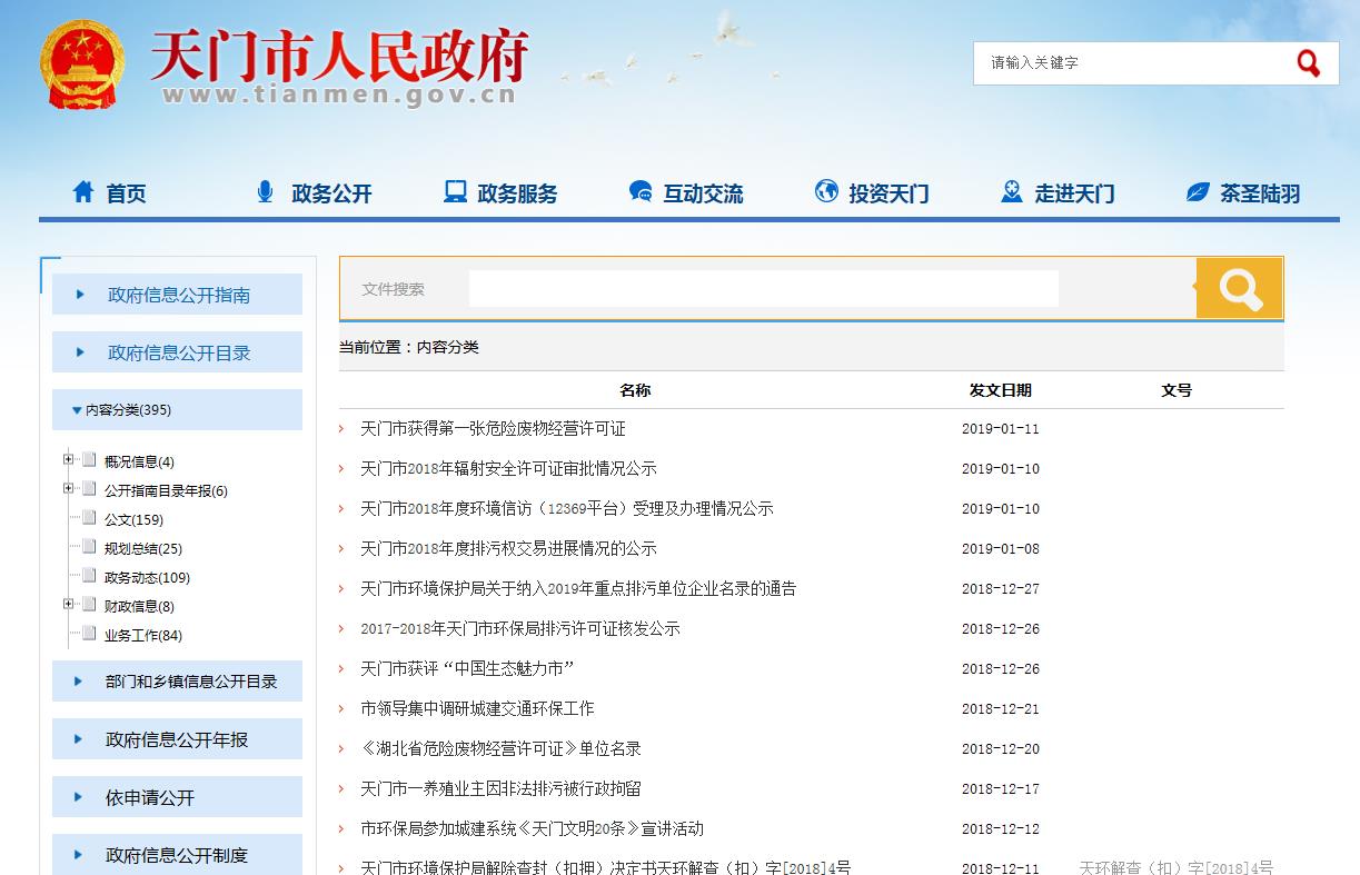 ??公開本單位應公開的各類公文,及時公開并更新國家環境保護標準,公開本年度輻射安全許可證辦理情況,公開本轄區企業行政處罰文件、責令改正文件、查封扣押文件,公開本年度環境監察信息、環保大檢查信息,公開天門市排污許可證辦理情況,公開本年度環境信訪(12369熱線)受理與辦理情況,及時在市政府網站發布并向省廳后臺發送本地環保機構工作動態。