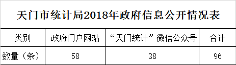 在天門市人民政府門戶網站公布信息58條,其中在天門市政府“統計數據”欄目下公開天門市每月主要經濟指標數據和全年統計公報等內容共12條,政策解讀稿件發布1條,在市政府網站“統計局”專欄發布45條。在“天門統計”微信公眾號公布轉發信息38條。(如下表)