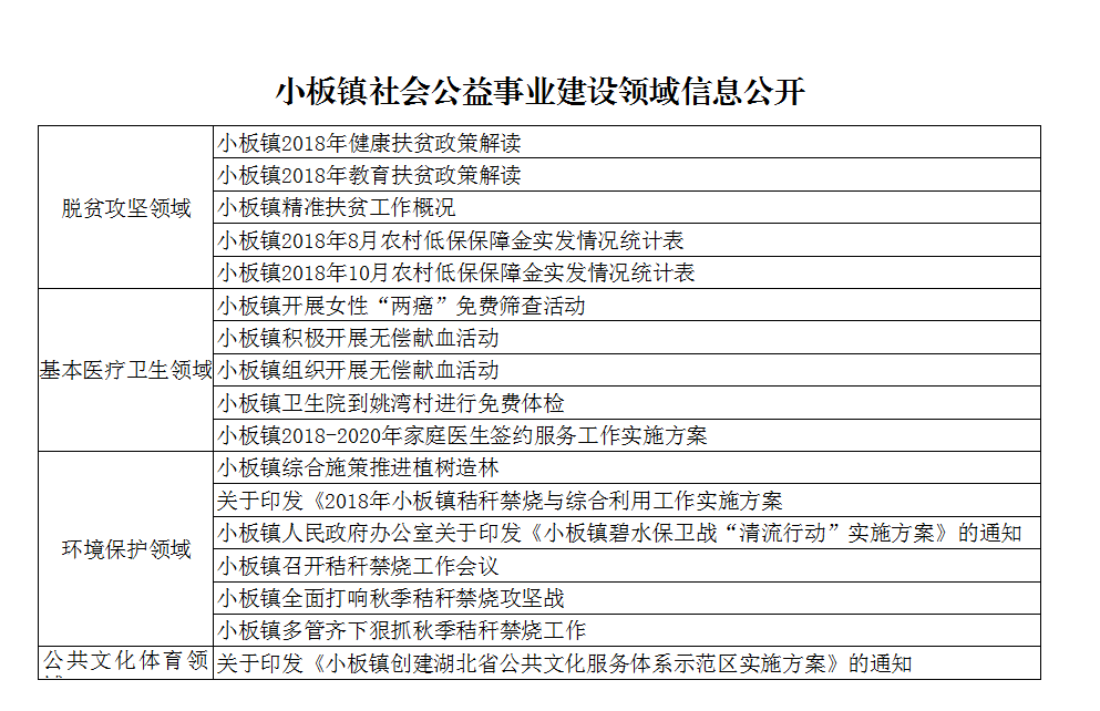 小板鎮(zhèn)2018年政府信息公開工作年度報告
