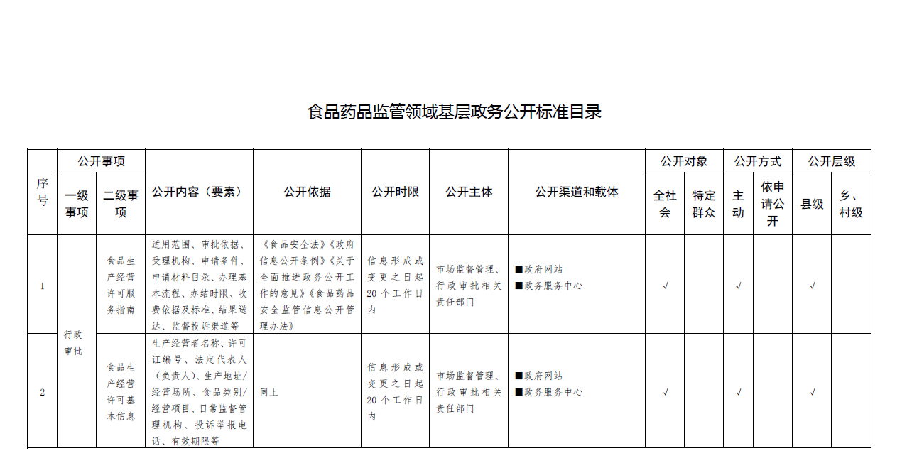 天門市食品藥品監(jiān)管領(lǐng)域基層政務(wù)公開標準目錄